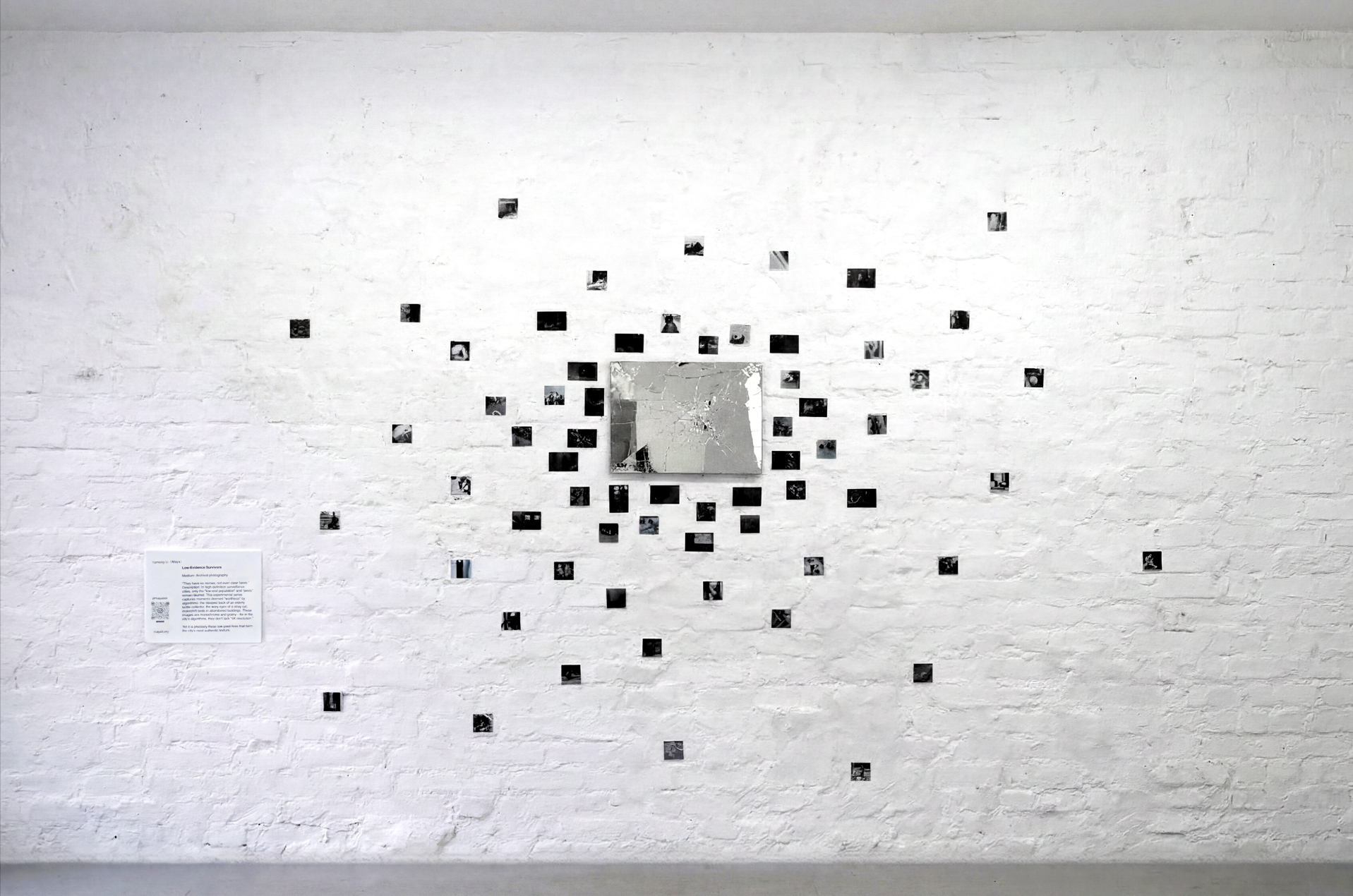 Schrödinger’s Stray. Physical research archive comprising archival pigment prints on varying substrates, site-specific mapping, and documented field notes. Dimensions: Variable (Approx. 200 × 300 cm installation area).